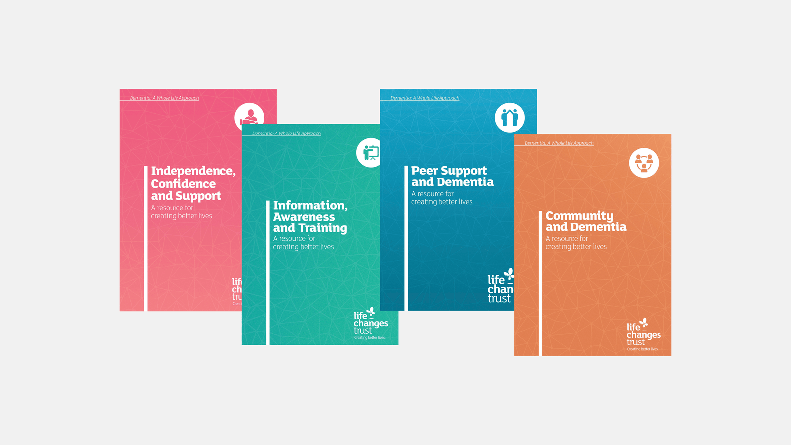 Designed a comprehensive set of learning reports titled ‘Dementia: A Whole Life Approach’ for both digital and print. For national print distribution, I created a custom box-case to house the full collection.